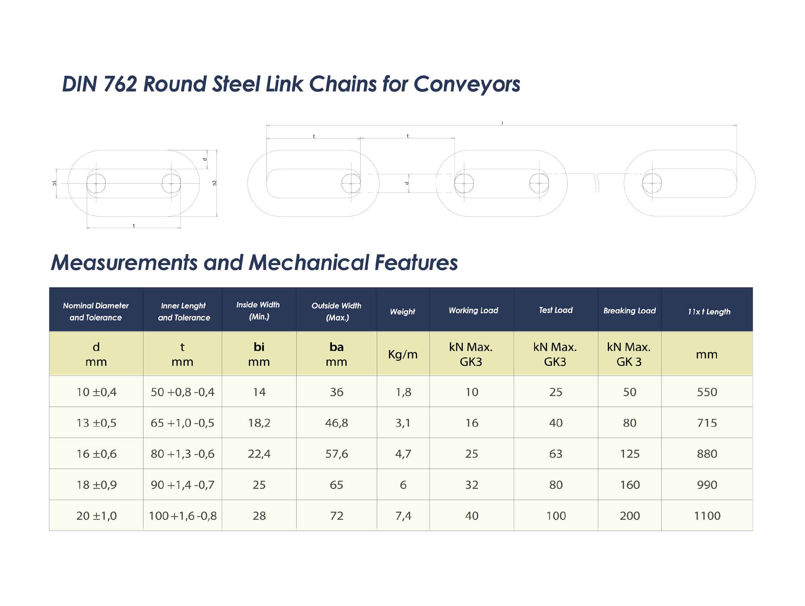 KONVEYÖRLER İÇİN YUVARLAK ÇELİK BAKLALI ZİNCİRLER – DIN 762